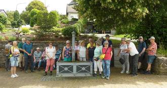Die Wandergruppe beim Dorfbrunnen in Langenbaum.