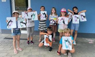 Als die Künstler der Ganztagsschule der Grundschule Herschbach in ihrer Pferde-AG am Nachmittag des 15. Juni auf dem Schulhof saßen und mit Wasserfarben ihre Fußsohlen anmalten, wussten sie noch nicht, was das zu bedeuten hatte.