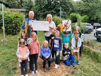 Herr Stahl war sofort bereit unser Projekt zu fördern und somit konnten wir die neue Schaukel endlich anschaffen. Am 05.07.2023 besuchte Herr Stahl die Wühlmäuse, um den „Scheck“ zu überreichen.