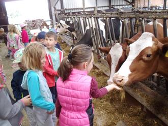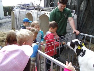Kalle, der jüngste Sohn der Familie, nahm sich viel Zeit für die interessierten Fragen der Kinder und zeigte uns die Tiere und Maschinen des Hofes.