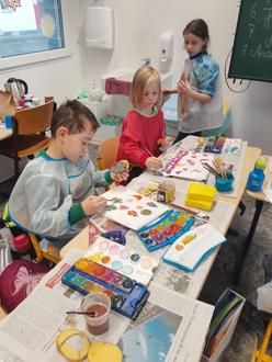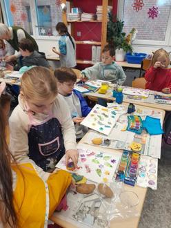 Nachdem die Kinder der 2a in den letzten Wochen an dem Kalender gearbeitet haben, den sie zu Weihnachten verschenken, wurde am letzten Schultag nun auch noch das Geschenkpapier selbst gestaltet. Dazu hatten die Kinder Kartoffeln und Ausstechförmchen mitgebracht.