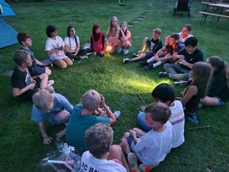 Was für ein wunderschöner Abschluss der Grundschulzeit war das für die Kinder, die Lehrerin und die Eltern der Klasse 4c der Grundschule Herschbach auf der Schneidmühle bei Ellenhausen. Am Freitag, den 14.07. traf man sich zum Aufbau der Zelte bei Waltraud und Manfred Kalb auf dem wunderbaren, alten Bauernhof. Es wurde gegrillt, Stockbrot gebacken, Fußball, Tischtennis und Kicker gespielt. Es wurden Pommes selbst gemacht und mit indianisch bemalten Gesichtern Perlenbändchen hergestellt, war dieser Ausflug doch gleichzeitig auch Abschluss der Unterrichtseinheit „Indianer“. Die Kinder durften die Eier aus dem Hühnerstall holen und beim Füttern der Gänse helfen. Gemeinsam brachte man die Ziegen auf die Wiese und fleißig wurden die Ponys geputzt. Auf dem hofeigenen, kleinen Reitplatz wurden die Kinder auf den Ponys geführt. Bei der Nachtwanderung wurde im Wald der Mond besungen und Popcorn gefunden, welches man später am Lagerfeuer verspeiste. Nach ruhiger Nacht, teilweise im Zelt, teilweise am Lagerfeuer, begann man gemeinsam den neuen Tag. Als um 10.00 Uhr die Eltern kamen, ließen sich die Kinder von den wenigen Regentropfen nicht davon abhalten, den Eltern mit ihren im Kunstunterricht selbstgenähten Sockenpuppen ihr „Mana mana“ vorzuspielen, was alle Eltern begeisterte. Dieser Ausflug ließ wirklich keine Kinderwünsche offen und so mancher wollte nicht nach Hause. Ganz vielen Dank dem Ehepaar Kalb für die freundliche Aufnahme auf ihrem tollen Hof und allen fleißigen Helfern.