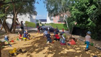 Nicht weniger als sage und schreibe 30 Helferinnen und Helfer haben am Samstag, 15. Juli zu Schippe, Rechen, Lappen, Säge, Besen und sogar Bagger gegriffen und den Spielplatz der Kita Gänseblümchen aufgeräumt.