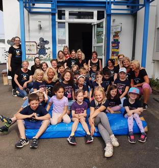 Wir durften am 14.07. unsere Pfiffikusse ganz offiziell aus dem Kindergarten „rauswerfen“. Ja, ihr lest richtig, die Kinder werden aus unserer Eingangstüre im hohen Bogen herausgeworfen. Natürlich liegt dort eine dicke Matte.
