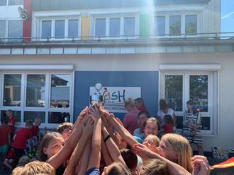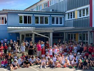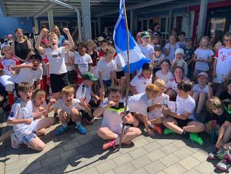 Das Fußballfieber hat nicht nur im Stadion die Menge angesteckt, sondern auch die Schüler und Schülerinnen der Grundschule Herschbach. Passend zur derzeitigen EM in Deutschland hat auch unsere Schule ihre Pforten geöffnet für all jene, die fußballbegeistert sind! Am 09.07.2024 bei strahlend blauem Himmel kam es nach einer ausgiebigen Aufwärmphase auch zum heiß ersehnten Anstoß. Zuvor wurden per Losverfahren für jede Klasse ein Land gewählt, das sie bei dieser Mini-EM vertreten sollten. Dabei wurde sich passend in den Farben der Nationalmannschaft gekleidet, riesige Fahnen geschwungen oder kunterbunte Plakate für die eigene Klasse unter tosenden Anfeuerungsrufen hochgehalten. Der Zusammenhalt untereinander wurde schnell deutlich, sobald sich der Ball Richtung Tor bewegte.
