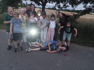 Nach dem Essen ging es nach draußen. Dort spielten viele eine Runde Fußball, tanzten zur Musik oder spielten verschiedene andere Spiele. Es wurde viel gelacht und alle hatten ihren Spaß. Als es dunkel wurde, machte sich die ganze Bande auf zur Nachtwanderung.