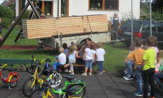 Da staunten die Kindergartenkinder nicht schlecht, als ein PKW mit Anhänger über den Spielplatz bis zur Nestschaukel fährt: