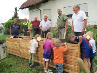 Das Hochbeet spendete die Zukunftswerkstatt im Rahmen ihres LEADER-Projektes für die Kindergartenkinder.