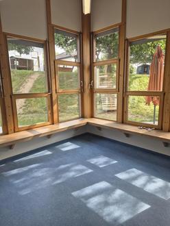 Die dreiwöchige Sommerpause in unserer Kita haben wir genutzt, um die Bodenbeläge in den beiden Gruppenräumen und dem Zwischenraum erneuern zu lassen. Zuvor wurde das gesamte Mobiliar durch das Kita-Team und Mitglieder des Gemeinderates in die Turnhalle geräumt. Die Sanierungsmaßnahme war notwendig, da der alte Belag nach über dreißig Jahren an vielen Stellen sichtbare Gebrauchsspuren hatte. In diesem Zuge wurden auch die Innenwände der drei Räume gestrichen und erstrahlen nun wieder in neuem Glanz.