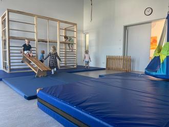 Nach der Fertigstellung des Anbaues genießen wir den Platz und die neuen Räumlichkeiten. Insbesondere der neue Bewegungsraum wird täglich intensiv von den Kindern bespielt. Bereits nach kurzer Zeit wurde klar, dass ein Klettergerüst und Hängevorrichtungen an der Decke zum Befestigen von Bewegungsmaterial wie Schaukel und Leiter den Raum komplettieren würden.
