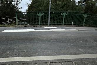 Der Bildausschnitt zeigt die differenzierten Bordhöhen. Links die Nullabsenkung für Rollstuhlfahrer u.a. und rechts die Bordhöhe von 6 cm für blinde oder sehbeeinträchtigte Personen.