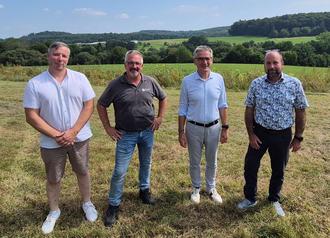 Hoher politischer Besuch aus Mainz hatte sich für den Nachmittag des 14. August in Maxsain angekündigt. Und so konnte ich gemeinsam mit den Beigeordneten Thomas Tönges und Sascha Neugebauer den Präsidenten des Landtags Rheinland-Pfalz, Herrn Hendrik Hering, und seinen Büroleiter, Herrn Thomas Mockenhaupt, in unserer Ortsgemeinde begrüßen.