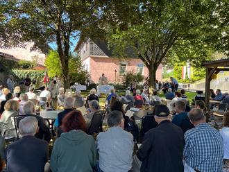 In diesem Jahr wurde das Patrozinium unserer Kirche „Mariä Himmelfahrt“ ganz besonders gefeiert, denn die erste Erwähnung des Kirchturms im Jahr 1325 gab Anlass, das 700. Jubiläum als großes Fest zu gestalten. Das Wetter spielte mit und wir konnten den Pfarrgarten zum Gottesdienst sowie zum anschließenden Zusammensein mit Snacks und Getränken nutzen. Wie bereits seit vielen Jahren hatte das Team um Ursula Salzmann sich wieder besondere Mühe gemacht und zauberhafte Kräutersträuße gebunden. Nach der Segnung dieser, durfte jeder Besucher sich ein Sträußchen mit nach Hause nehmen und den Tag in guter Erinnerung behalten. Danke dafür!