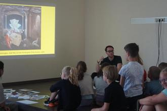 Luzia Holzbach, Lenny Roßmann und Tizian Holzbach waren das kreative Team der Kunst-Ferienaktion. Luzia Holzbach studiert Produktdesign, Lenny Roßmann studiert nach Kunstgeschichte nun Soziale Arbeit und Tizian Holzbach studiert im Master „Curatorial Studies“. Die Drei verfügen über viel Erfahrung im Umgang mit Kindern und begleiteten die Aktion auch in diesem Jahr mit viel Empathie, hoher Professionalität und großer Freude. Schwerpunkt dieses Jahres war die künstlerische Auseinandersetzung mit dem Thema „Tiere in der Kunst“, dem sich die Kinder mit Buntstiften, Acryl- und Wasserfarben theoretisch und praktisch näherten.