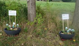 Gemeinsam mit den Kindergartenkindern wurden zwei Stationen für den neuen Feen- und Wichtelweg eingerichtet.