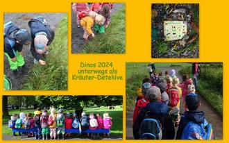 Gemeinsam mit ihren Erzieherinnen und Frau Schweizer-Waser (einer Ernährungsfachkraft und Diplom-Ökotrophologin der AOK) entdecken die künftigen Schulanfängerkinder 2024 Gräser, Kräuter und Früchte am Wegesrand oder auch aus ihrem mitgebrachten Kräuterkorb. Die Kinder dürfen die Blätter oder Früchte fühlen, riechen und schließlich eine Waldschatzkarte mit Schätzen füllen. Sogar an Brennnesseln trauen sich fast alle heran und probieren die Samen. Dabei haben die Kinder gelernt, dass man die Pflanzen mit einer kleinen Schere abschneiden kann, um ihre Wurzeln zu schützen und sie nicht auszureißen. Am Ende gibt es eine große Kräuter-Brotdose für jedes Kind und der Vormittag vergeht wie im Flug. Wir danken Frau Schweizer-Waser für die Begleitung und vielfältigen Eindrücke.