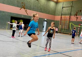 Kinder der Grundschule Herschbach springen hoch hinaus