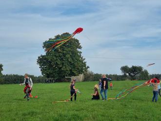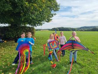 Ende September nutzten die Kinder des vierten Schuljahres die Gunst der Sonne und machten eine Wanderung durch den Wald zu den Zehntgarben. Nach der Besichtigung und Klärung der Sage rund um das Steingebilde aus Basalt führte sie der Weg zur Burgruine nach Hartenfels. Am „Schmanddippen“ trafen sich die Kinder der Klasse 4a mit ihren Eltern und genossen die herbstlichen Sonnenstrahlen bei einem gemeinsamen Mittagessen. Zu guter letzt marschierten die Kinder gemeinsam mit der Lehrerin Frau Borchert und den Eltern weiter nach Steinen. Im Gepäck hatten die SchülerInnen ihre farbenprächtigen Drachen, die sie auf den Feldern hinter der evangelischen Kirche in die Lüfte und zum Staunen brachten.
