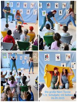 Gefühle zeigen macht stark! Diese zentrale Botschaft wurde von Theaterpädagogin Claudia Lichtwardt und Theaterpädagoge André Reber durch verschiedene Spielsequenzen und einen anschließenden Austausch mit den Kindern vermittelt. In den dargestellten Szenen erlebten die Schülerinnen und Schüler, wie unterschiedliche Situationen verschiedene Gefühle hervorrufen können. Dabei lernten sie, zwischen guten und schlechten Bauchgefühlen zu unterscheiden. Letztere wurden symbolisch in die große Nein-Tonne geworfen, die Claudia Lichtwardt und André Reber mitgebracht hatten.