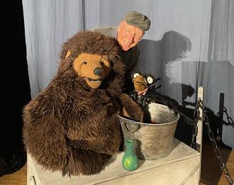 „Krähe und Bär“ war der fünfte Auftritt von Matthias Träger mit seinem Figurentheater Tearticolo in der Stadtbücherei Selters. Er gestaltete selbst alle Figuren und das Bühnenbild zu dem Kinderbuch von Martin Baltscheidt.