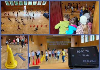 Am Dienstag, 08. Oktober 2024, nahm die Oberwaldschule – Grundschule – Selters erneut am landesweiten Bewegungsaktionstag der Initiative „Rheinland-Pfalz – Land in Bewegung“ teil (offizieller Termin: 10. Oktober 2024), der darauf abzielt, Kinder zu mehr Bewegung zu animieren und ihre Gesundheit zu fördern. An diesem Tag stand an der Oberwaldschule das Erreichen von Lauf- und Walkingabzeichen im Mittelpunkt, wobei die Schülerinnen und Schüler die Möglichkeit hatten, durch möglichst langes Laufen oder Walken ohne Pause ihre Bewegungsminuten zu sammeln. Obwohl die Wettervorhersage ungünstige Bedingungen ankündigte, zeigte sich der Tag letztendlich erfreulicher als erwartet. Da jedoch die Verletzungsgefahr auf dem nassen Schulhof, auf dem die Bewegungszeit ursprünglich stattfinden sollte, zu groß war, wurde die Veranstaltung kurzfristig in die Festhalle der Stadt Selters verlegt, wo alle sicher ihre Runden drehen konnten.