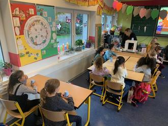 Am letzten Schultag vor den Herbstferien überraschte die Patenklasse 3a unter der Leitung von Frau Prié ihre Patenkinder der Klasse 1a mit einer ganz besonderen musikalischen Darbietung. Gemeinsam mit ihrer Lehrerin Frau Geiß versammelten sich die Erstklässler im Klassenraum der 3a, um einen unvergesslichen Auftritt zu erleben.