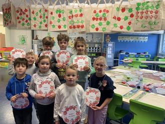 Zusätzlich entstanden mit Schere, Papier und viel Fantasie kreative Apfelbasteleien. Ob Apfelgirlanden oder Apfelmännchen - der Fantasie waren keine Grenzen gesetzt.