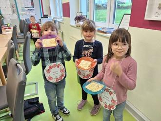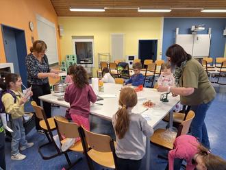 Außerdem wurde in der Schulküche fleißig gebacken. Die Kinder halfen beim Zubereiten von leckeren Apfelmuffins und Apfelkuchen, die später gemeinsam verzehrt wurden.