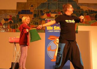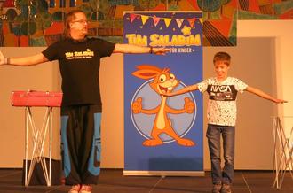 Kaum war Tim Salabim auf der Bühne in der Burghalle Hartenfels, da erfüllte auch schon freudiges Lachen die Halle. Mit vielen coolen Zaubertricks nahm Tim die Kinder mit in die Welt der Magie. Die Kinder und auch einige begleitende Erwachsene wurden aktiv in das Mitmachprogramm eingebunden. Da blieb kein Auge trocken und einige der rund sechzig Kinder hielt es nicht mehr auf den Stühlen. Ein besonderer Spaß war die Mitmachaktion „Das böse Monster und die schöne Prinzessin“ mit dem Jugendpfleger Olaf Neumann in der Hauptrolle.