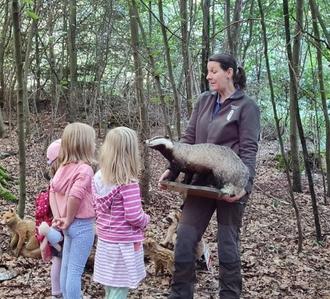 Ein Ort der uns einlädt zum Entspannen, Durchatmen und Wohlfühlen, bedarf unseren Schutz. Sehr eindringliche Worte findet V. Mayer nicht nur für die kleinen Menschen, sondern auch für die Großen. Mit Leichtigkeit schaffte Sie es, Kinder wie Erwachsene einzubinden und ihr Wissen anschaulich weiterzugeben. Dazu brachte sie u.a. ihr „Team“ mit, bestehend aus Eulen und Frettchen. Mit großen Eulen- Augen wurden die Kinder von Charly (einer Schleiereule) oder Michel (einem Waldkauz) beobachtet. Beinahe ehrfürchtig wurde das weiche Federkleid der Eule, zärtlich mit nur einer Fingerspitze, betastet. Ein Moment der Stille, um unsere sonst so lebhaften Kinder. „Warum kann die Eule ihren Kopf soweit nah hinten drehen?“, „Hat die Eule Ohren?“, Wie „sieht“ sie in der Nacht ihre Beute?“ waren eine von vielen Fragen, ob von Groß oder Klein. Die Waldpädagogin beantwortete alles mit viel Engagement und praktischen Übungen. Auch Frau und Herr Mayer, die Frettchen aus Vici´s Team, wurden von den Kindern gestreichelt, neugierig beobachtet und „gerochen“, denn „du stinkst, wie ein Iltis“ ist nicht nur eine Redewendung sondern Tatsache, so wie alle Teilnehmer feststellen durften.????
