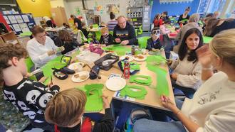 Im Mittelpunkt des Bastelns stand die Laterne "Das kleine Wir", ein Symbol für Gemeinschaft und Zusammenhalt, das auch im Unterricht besprochen und bereits von den Kindern in Teamarbeit hergestellt wurde und grünglitzernd in der Klasse hängt. Mit viel Eifer und Unterstützung ihrer Eltern gestalteten die Kinder ihre Wir-Laternen, die am Ende des Tages stolz präsentiert wurden.