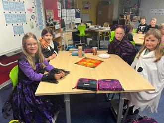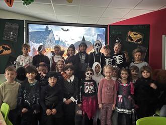 Am 31. Oktober war in unserer Schule nichts wie sonst - es wurde gruselig. Schon am Morgen kamen alle Kinder verkleidet in die Schule: Hexen, Vampire, Skelette, Geister und viele andere schaurige Gestalten bevölkerten unser Klassenzimmer, das bereits gruselig geschmückt und düster auf sie wartete.