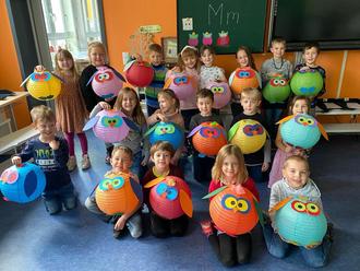 Frau Prié bastelte mit der Klasse 1a Monsterlaternen, die im Dunkeln besonders feurig leuchten. Die Klasse 1b von Frau Ludwig stellte passend zu ihrem Klassentier bunte Eulen her, die mit ihren großen Augen beim Martinsumzug sicher auffallen werden.