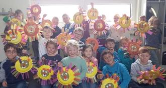 Auch die Klassen 1c und 1d fertigten ihr Klassentier mit allerhand Material an. So konnten die Klasse 1c von Frau Endlein ihre Löwen und die Klasse 1d von Frau Simon ihre Lamas voller Stolz präsentieren.