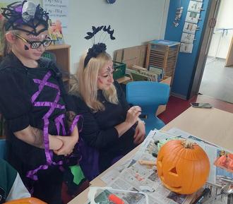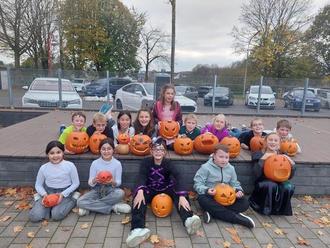 Die Kinder halfen sich auch gegenseitig, tauschten Ideen aus und freuten sich über die gelungenen Ergebnisse. Die geschnitzten Kürbisse wurden am Ende stolz präsentiert und sorgten für eine festliche Halloween-Stimmung.