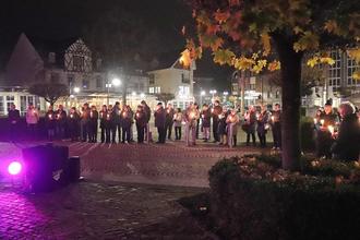 Am zurückliegenden Samstag, ab 18.00 Uhr, fanden sich fast 50 Menschen zusammen, um an der Gedenktafel rückseitig der evangelischen Kirche Austausch zu finden.