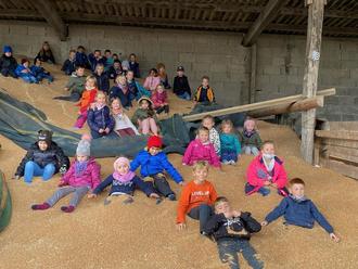 Gestärkt ging es nun weiter über das Gelände, wo es viele Informationen über Kälbchen, Kühe und auch Bullen gab. Das Erkunden eines Traktors durfte natürlich auch nicht fehlen, sodass die Kinder sich sofort hinters Lenkrad setzten. Riesige Freude hatten sie dann auch noch beim Probieren des frisch geernteten Weizens, da sie in der großen Weizenkammer toben durften.