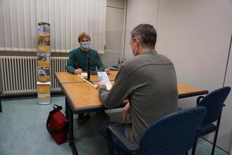 Energieberater Herr Specht (h.l.) im persönlichen Beratungsgespräch.