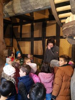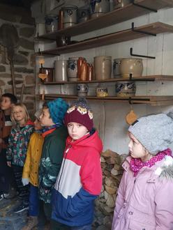 In einem alten Stall erfuhren die Kinder dann, dass die Nachbarn früher oft den Familien geholfen hatten, sich um die Kühe und Hühner zu kümmern. Zusammenhalt war ganz wichtig, genau wie in einer Klasse.
