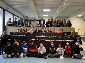 Am Samstagabend und Montagmorgen wurden die Spenden in der Schule sortiert. Anschließend erfolgte am 18. November die offizielle Übergabe an die Tafeln. Neben der Schulleitung waren Landrat Achim Hallerbach, der Verbandsbürgermeister von Dierdorf Manuel Seiler, der Schirmherr und Verbandsbürgermeister von Puderbach, Volker Mendel, Verbandsbürgermeister Oliver Götsch von Selters sowie weitere Vertreter der Region anwesend. Schulleiter Bengjamin Bajraktari betonte: „Aus vielen kleinen Einzelspenden ist ein großes Ganzes entstanden, das den hilfsbedürftigen Menschen zugutekommt.“