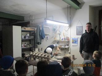 Die Kinder der Projektgruppe „Erlebniskinder“ besuchten die Töpferei Ströder-Stein in Mogendorf. Fabian Stein begrüßte die Kinder und erzählte von der langen Tradition der Töpferei. Seit sechs Generationen ist der Betrieb in der Familie. Der Töpfer (ist fast 40 Jahre in der Firma) zeigte an der Töpferscheibe, wie man aus Ton ein Gefäß dreht. Beim Zuschauen waren die Kinder so fasziniert, dass im Raum Stille herrschte wie in der Kirche, sagte Fabian. Es war schon wie eine Meditation. Der Töpfer erzählte uns, dass er jeden Tag glücklich nach Hause geht. Er liebt die Ruhe und die Arbeit mit dem Ton erfüllt ihn. Jedes Gefäß wird handgemacht und auf Bestellung hergestellt. Auch eine Erzieherin durfte es einmal versuchen. Sie merkte schnell, dass viel Übung dazu gehört, ein Gefäß zu drehen.