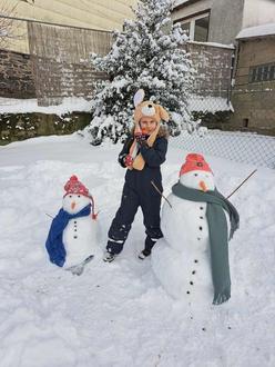 Die Kinder der Klasse 1a haben die winterlichen Tage genutzt, um ihrer Kreativität im Schnee freien Lauf zu lassen.