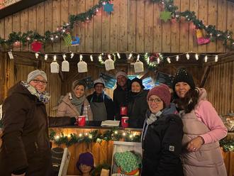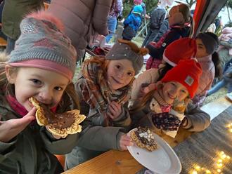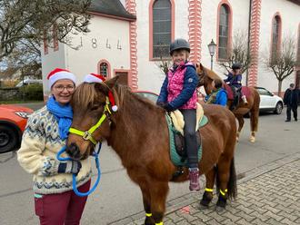 Bei bestem Wetter drängten sich am Samstag, 3. Dezember, zahlreiche Besucher vor den festlich geschmückten Weihnachtshäuschen und bewunderten das große Angebot. In Vorbereitung des Weihnachtsmarktes haben die Schülerinnen und Schüler unserer Grundschule gebastelt und gemalt, sodass wir viele Kreationen an unserem Weihnachtsstand anboten. So konnten die Besucher Weihnachtsdekorationen, Mützen und Socken, Grußkarten, Windlichter und vieles mehr erwerben. Natürlich war auch, wie es sich für einen Weihnachtsmarkt gehört, für das leibliche Wohl bestens gesorgt und so bildeten sich lange Schlangen vor unserem Waffelstand. Egal ob nur mit Puderzucker oder weiteren süßen Toppings... Wer selbst kreativ werden wollte, konnte dies in unseren Bastelwerkstätten. Dort wurden ausgefallene Karten mit der Stanzmaschine oder wunderschöne Sterne gebastelt. Ein weiteres Highlight für die Kinder stellte das Ponyreiten dar. Kostenlos konnten die Kinder mit Frau Göbel und einer weiteren Betreuerin eine Runde um die Kirche drehen.
