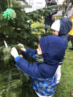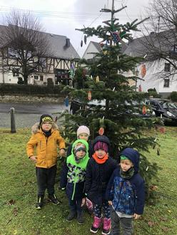 Kindergarten Flohzirkus schmückt Weihnachtsbaum in Wölferlingen