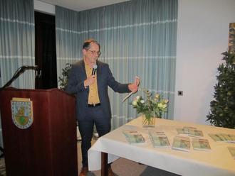 Bürgermeister und Erster Vorsitzender des Kulturkreises Oliver Götsch begrüßt die Gäste zur Autorenlesung mit Vera Apel-Jösch