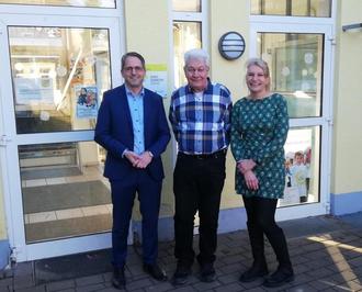v.l. Bürgermeister Oliver Götsch, Klaus Panterott, Schulleiterin Petra Edel