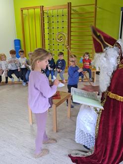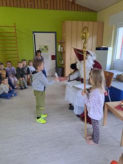 Der Nikolaus zeigte sich sehr erfreut über die Darbietungen der Kinder und nahm sich Zeit für jedes einzelne. In seinen Worten würdigte er nicht nur den Einsatz und die Mühe der Kinder, sondern sprach auch den pädagogischen Fachkräften seinen besonderen Dank aus. Er betonte die wertvolle Arbeit, die sie täglich für die Kinder leisten, und lobte ihr Engagement und ihre Fürsorge.