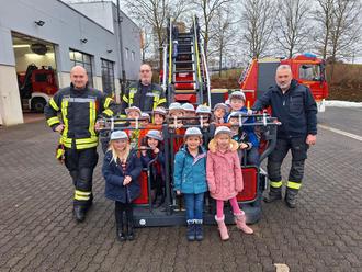Im Anschluss daran beschäftigten wir uns mit dem Thema „Feuerwehr“. Wir konnten einiges über die Aufgaben, Ausrüstung und Fahrzeuge der Feuerwehr lernen. Zu Beginn wurde vieles zum Thema gestaltet, unter anderem ein Feuerwehrausweis und ein Feuerwehrmann. Der Höhepunkt war am 26.01.24 der Besuch der Feuerwehrwache in Selters. Dort erfuhren wir viel über Kleidung oder Sauerstoffmaske mit Sauerstoffflasche (diese war richtig schwer). Besonders faszinierend waren die verschiedenen Fahrzeuge. Das Highlight war die Autofahrt mit den Feuerwehrautos.
