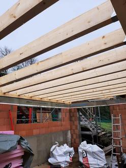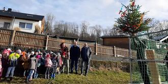 Nachdem der Dachstuhl des Anbaus unter den kritischen Augen der Kinder fertiggestellt war, durfte natürlich ein geschmückter Richtbaum nicht fehlen.