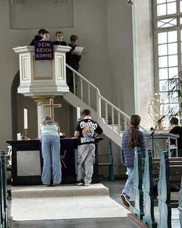 Pfarrerin Swenja Müller erwartete die Gruppe bereits und hieß alle herzlich willkommen. Nach einer kurzen Vorstellung und den ersten Fragen vonseiten der Religionsgruppe durften die Jungen und Mädchen eine Kirchenrallye durchführen, um die Kirche und ihre Ausstattung besser kennenzulernen. Dabei gab es einiges Neues zu entdecken: in einem braunen Mäppchen befand sich die Fernbedienung für die Glocken. Die Selterser Bürger waren sicher sehr erstaunt, wie oft die Glocken an diesem Tag läuteten. Wie heißt der Hausmeister, der sich um die Kirche kümmert? Wie viele Stufen führen zur Kanzel? Was steht auf dem Altar? Diese und andere Aufgaben wurden mit Begeisterung gelöst. Dann suchte sich jeder einen Lieblingsplatz, an dem er/sie sich wohlfühlt. Nach Beendigung der Rallye durften freiwillige Schüler und Schülerinnen von der Kanzel aus ihren Mitschülern einen Psalm aus der Bibel vorlesen. Es war beeindruckend zu sehen, wie wissbegierig und aufmerksam die Schüler und Schülerinnen waren. Sie stellten viele Fragen und zeigten großes Interesse an den religiösen Traditionen. Gerne möchten die Jungen und Mädchen eine weitere Gelegenheit nutzen, um „live und vor Ort“ etwas über ihre Religion zu erfahren. Dies war eine gute Ergänzung zu dem, was bereits im Religionsunterricht erarbeitet worden war.